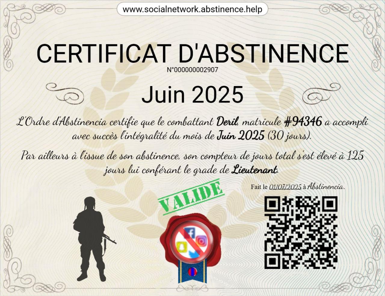 Nouveau grade obtenu : Soldat - J3 Merde je voulais pas appuyer sur relancer immédiatement une nouvelle abstinence.